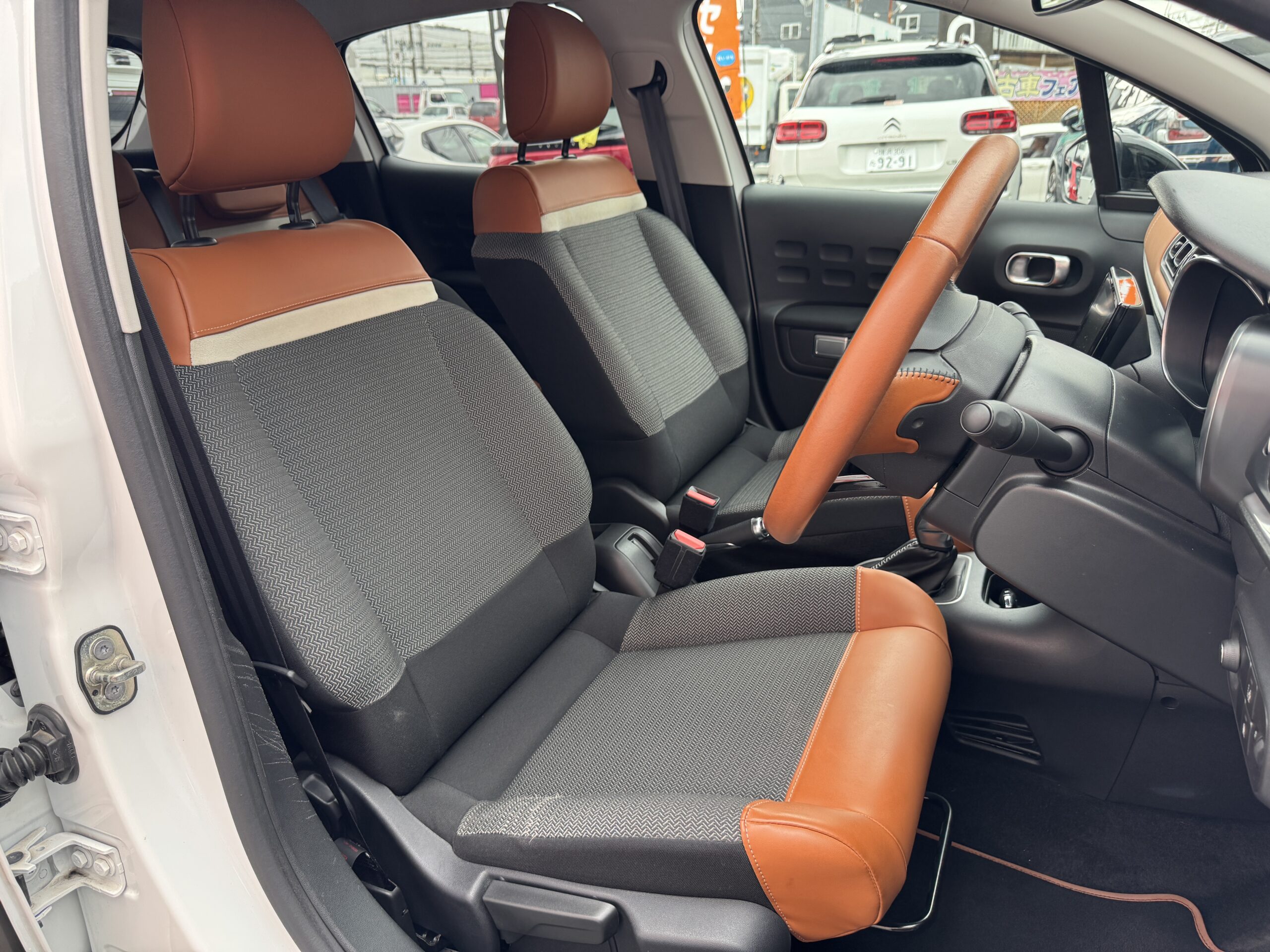 禁煙1オーナー特別限定車「カフエデュション」です。専用モカブラウンのハーフレザーシートとステアリング・ダッシュパネルも同様にとてもお洒落な仕様です。専用BODYカラーや専用17インチAW、更にディラーオプションのフルセグTV内臓ナビ・前後ドライブレコーダーなどなど充実装備が魅力的な車輛です。もちろん各種安全支援装置(ブレーキアシスト・レーンアシスト・ブラインドスポットモニター・バックソナー)を搭載した満足度の高い車輛です。大切な付属品メンテナンスノート・取説・スマートキースペアー全て完備してます。