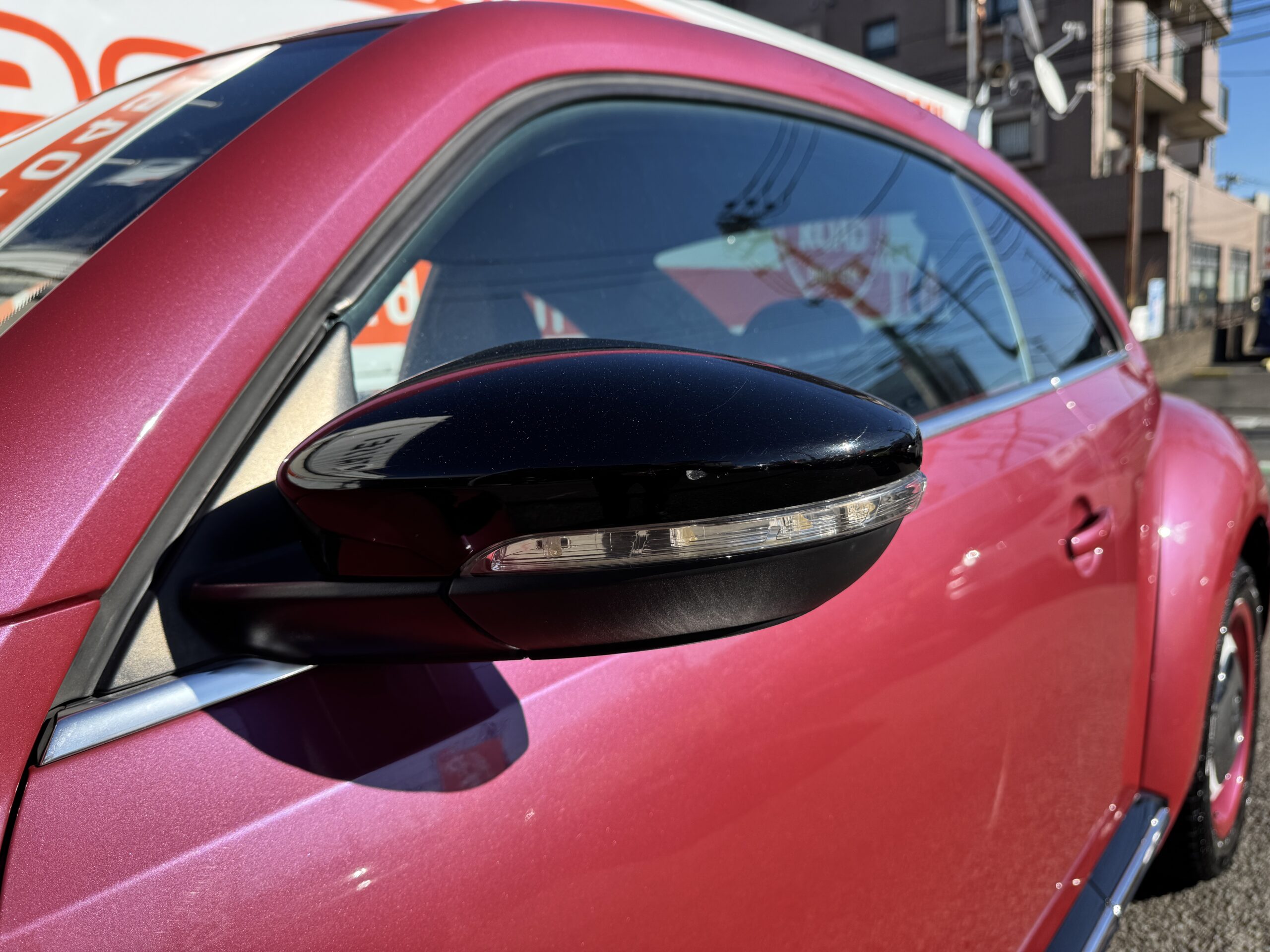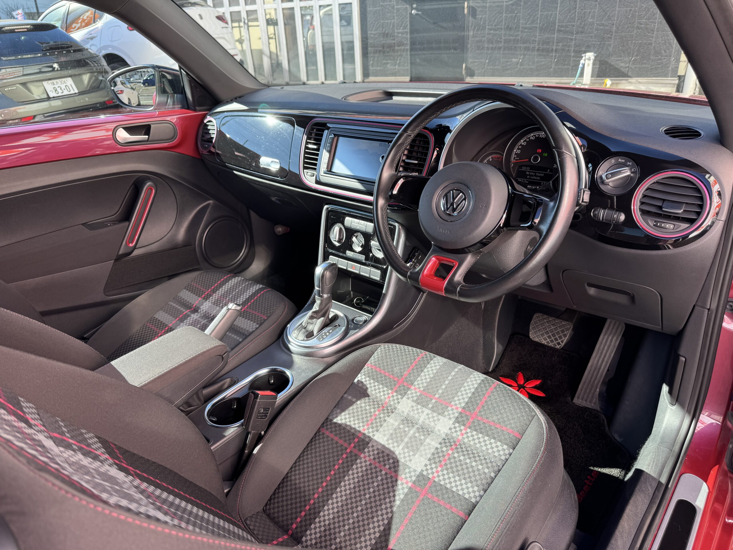 マイナーチェンジ後期モデル300台特別限定車「ハッシュタグピンク・ビートル」です。後部に修復歴がありますが、走行には影響はありません。専用BODYカラー・専用チェック柄シート・専用17インチアルミホイール・HIDヘッドライト・キーレスエントリーシステムを装備した極めてお洒落で素敵な車輛です。モデルチェンジにてフロントグリル周りのデザイン変更、キーレスエントリーシステムの採用、ボタンスタート、純正フルセグTV内臓ナビも装備しています。取説、メンテナンスノート完備。